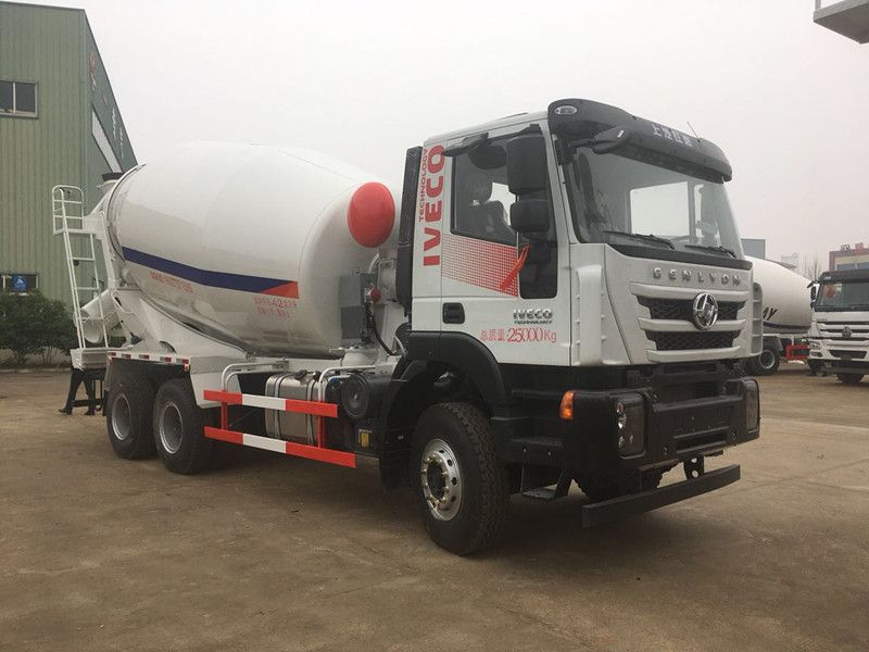 水泥搅拌车(混凝土搅拌车)使用注意事项,液压系统压力应符合使用说明书中的规定,不得随意调整。液压油的油质和油量应符合原定要求。水泥搅拌车(混凝土搅拌车)装料前,应先排净拌筒内残存的积水和杂物。在运输过程中要不停的转动,以防混凝土离析。混凝土搅拌运输车到达工地和卸料之前,应先使拌筒全速以14—18转/分转动1—2分钟,然后再进行反转卸料。反转之前,应使搅拌筒停稳不转。环境温度高于+25摄氏度,从装料、运输、到卸料延续时间不得超过60分钟,环境温度低于+25摄氏度,上述时间不得超过90分钟。冬期施工时,应切实做到:开机前检查是否结冰;下班时认真排除拌筒内及供水系统内残存积水,关闭水泵开关,将控制手柄置于“停止”位置。在施工现场卸料完毕后,应立即用搅拌车随带的软管冲洗进料斗、出料斗、卸料溜槽等处,清除粘附在车身各处的污泥及混凝土。在返回搅拌站的途中,应向搅拌筒内注150---200L水以清洗筒壁及叶片粘结的混凝土残渣。 每天工作结束后,司机应负责向搅拌筒内注入清水并高速(14—18转/分)旋转5—10分钟,然后将水排去, 以保证筒内清洁。