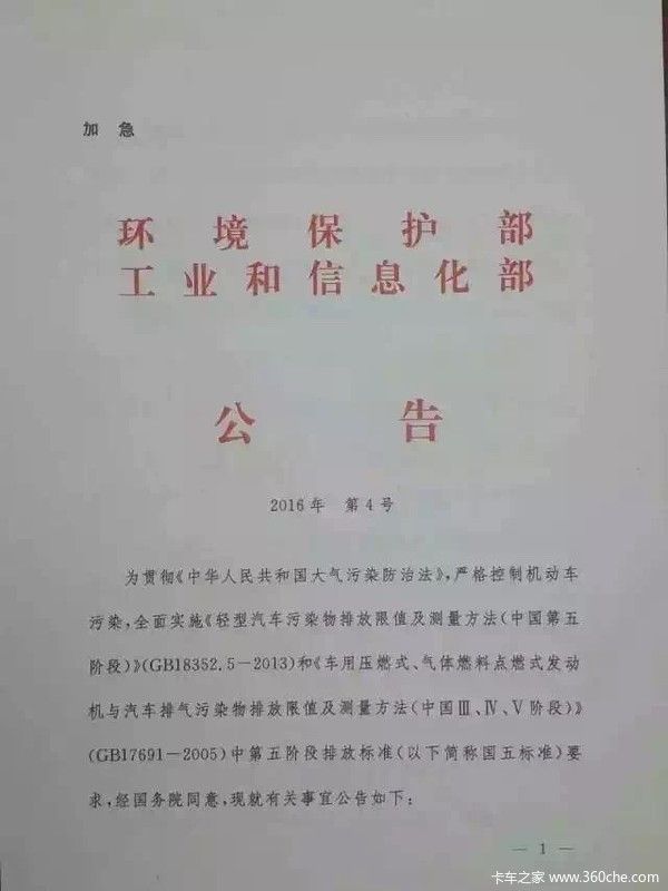 为贯彻《中华人民共和国大气污染防治法》,严格控制机动车污染,全面实施《轻型汽车污染物排放限值及测量方法(中国五阶段)》(GB18352.5-2013)和《车用压燃式、气体燃料点燃式发动机与汽车排气污染物排放限值及测量方法(中国Ⅲ、Ⅳ、Ⅴ阶段)》(GB17691-2005)中第五阶段排放标准(以下简称国五标准)要求,经国务院同意,现就有关事宜公告如下: