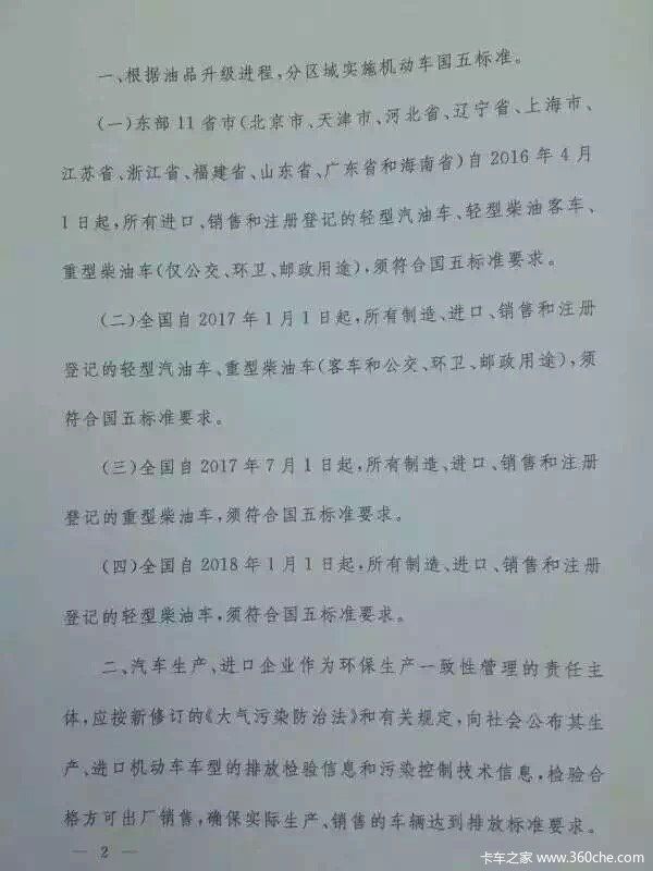 (二)全国自2017年1月1日起,所有制造、进口、销售和注册登记的轻型汽油车、重型柴油车(客车和公交、环卫、邮政用途),须符合国五标准要求。